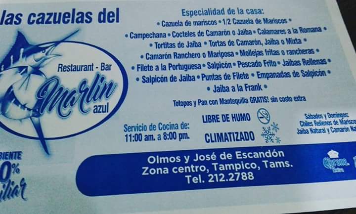 Introducing Marlin Azul, a delightful seafood haven located in the heart of Tampico, Mexico. With its cozy atmosphere at Fray Andres de Olmos 516, Marlin Azul captivates diners with fresh, flavorful dishes that celebrate the bounty of the sea. Patrons rave about the remarkable seafood casseroles and soups, highlighting the freshness and quality of the ingredients used. Luis Cruz notes the family-friendly vibe, making it an ideal spot to enjoy meals together. Edgardo Gallardo Coghlan appreciates the simplicity yet richness of the seafood soups, while Cinthia Campillo expresses her love for the highly recommended seafood casserole. Each dish reflects a commitment to excellence and authenticity, ensuring guests leave satisfied. If you're in the area, don’t miss the chance to experience the culinary delights of Marlin Azul. Your taste buds will thank you!